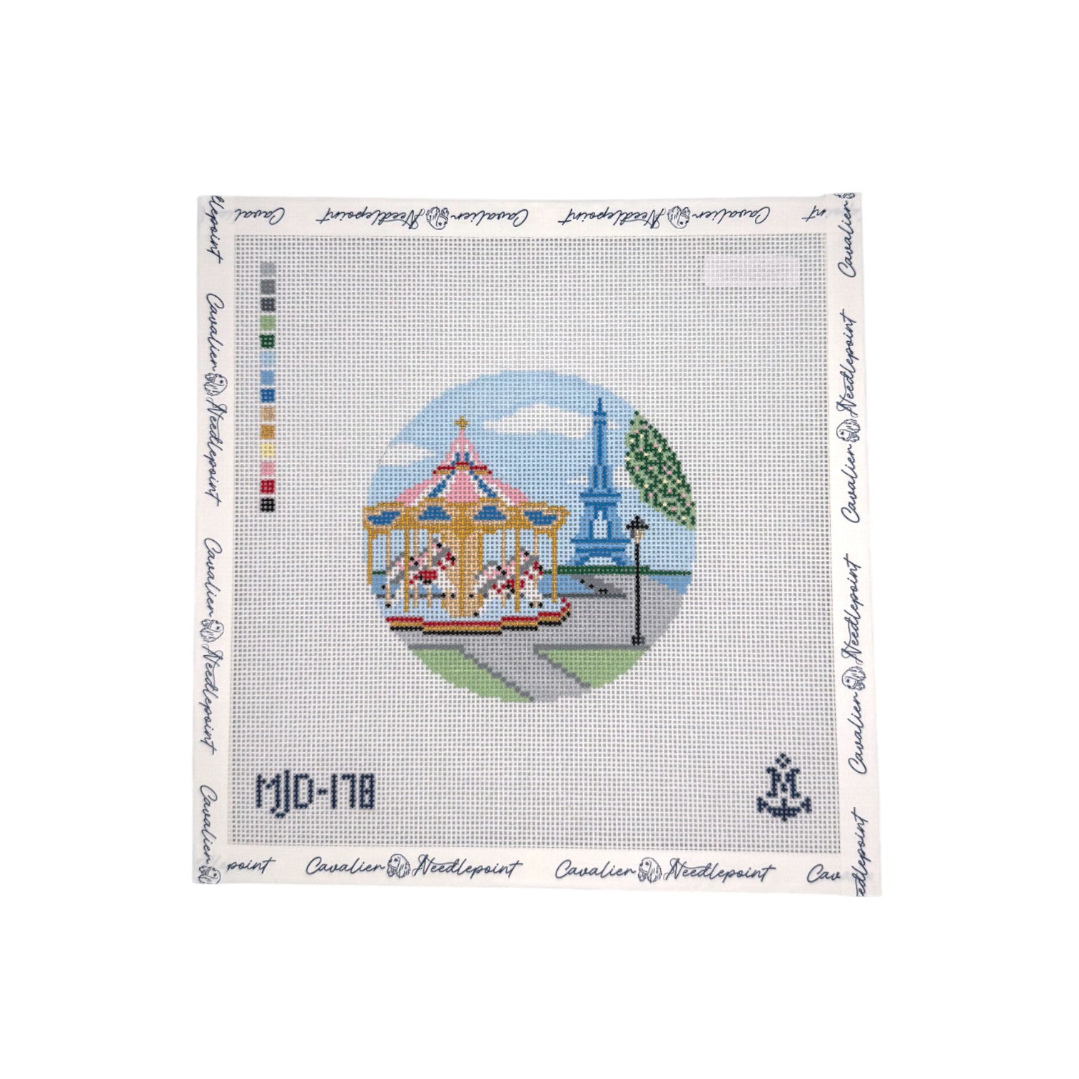 Twirl into a whimsical Parisian adventure with this enchanting Carousel Play needlepoint canvas! Hand-painted on 18-count mesh and measuring a charming 4" round, this design captures the magic and romance of a classic carousel in the City of Light.